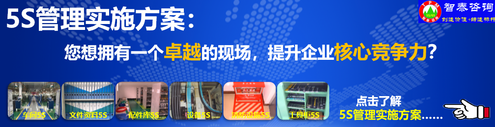 智泰咨詢下屬的5S管理公司首創(chuàng)的產(chǎn)品三天一標(biāo)桿,三天一條線,三天締造6~8個(gè)標(biāo)桿車間,智泰咨詢專業(yè)的顧問(wèn)團(tuán)隊(duì)為企業(yè)的5S管理快速打造已形成一套標(biāo)準(zhǔn)化內(nèi)容。