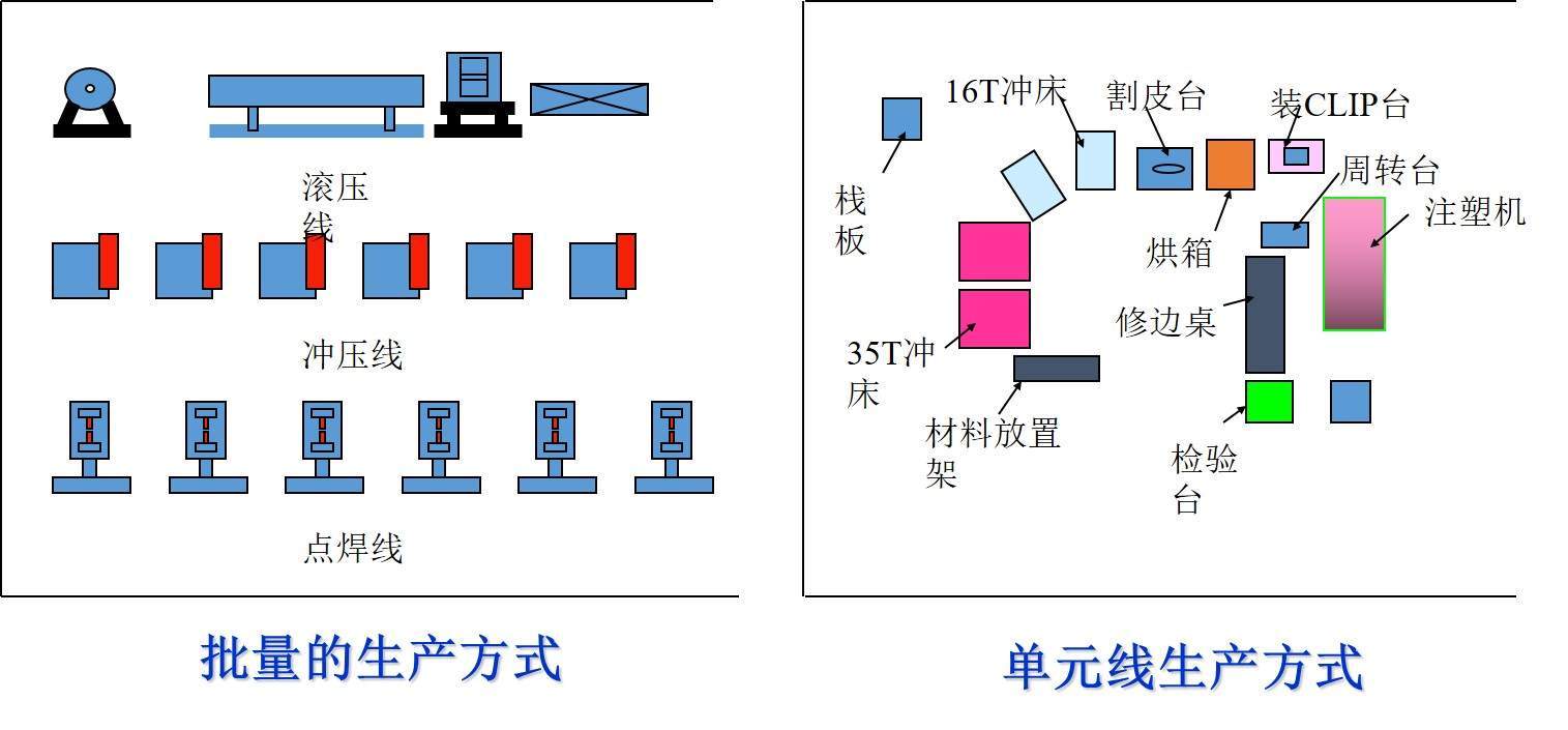 11.批量生產方式與單元線生產方式: