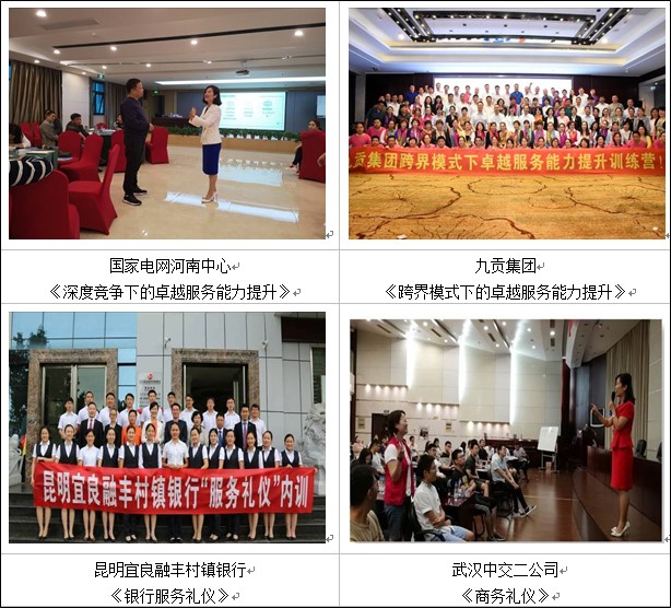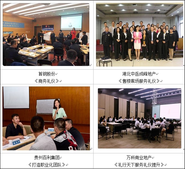 曾為中國人壽、中國平安、中鐵一局、國家電網等企業定制實戰禮儀課程,課程滿意度95分以上;