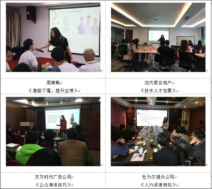 蘇交科,中鎢高新,人本集團,郵政儲蓄,湖南中煙,華潤電力,智通商學院,蘇州人民醫院,湖北周黑鴨管理有限公司、當代君合地產、人福醫藥、湖北FESCO、杜為爾獵頭、紳寶駕校、東方時代廣告、偉巴斯特、科都電氣公司、武漢大家人力資源服務有限公司、越秀人力、湖北科投、永安康健藥業、合景泰富地產、中合元創建筑設計、泰康人壽、中科巖土工程技術、佛吉亞、華夏幸福、武漢創投、華中科技大學、湖北大學、華中農業大學、天工集團有限公司、中盛置業、柳州市百貨、三門江林場、安徽啟智物業……
