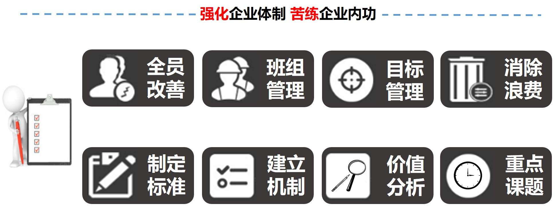 零庫存和快速應(yīng)對(duì)市場變化。精益生產(chǎn)不斷消除所有不增加產(chǎn)品價(jià)值的工作,所以,精益是一種減少浪費(fèi)的經(jīng)營哲學(xué)。