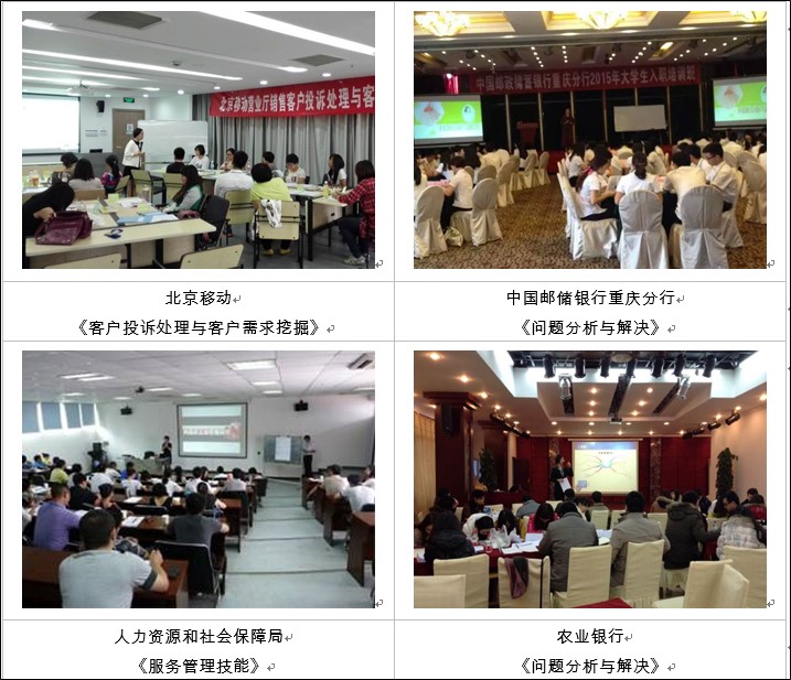 曾受邀兄弟單位及省級醫院、電力系統做《打造營業廳服務藍圖》及《客戶投訴處理培訓》、《問題分析與解決》,得到業界的高度認可,好評如潮