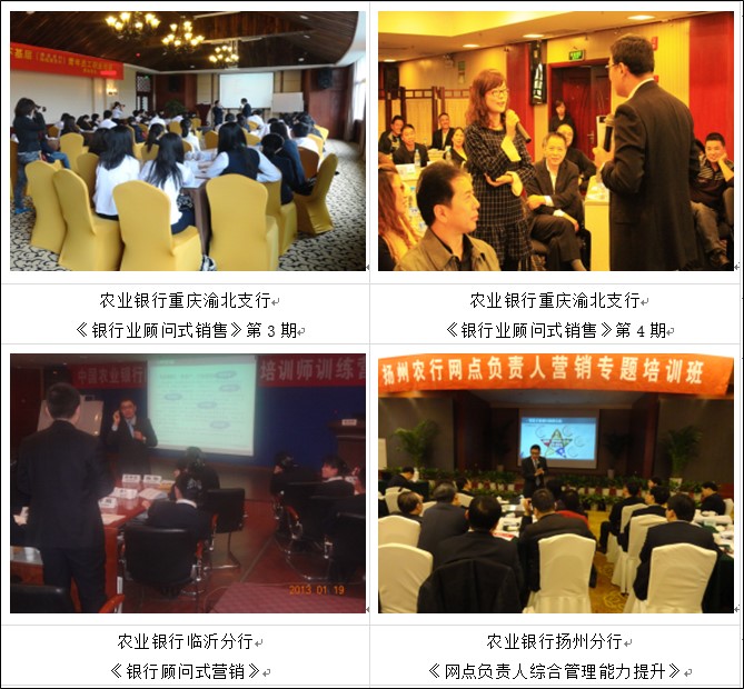 中行總行、浦發總行、光大總行、工商銀行、建設銀行、農業銀行、民生銀行、中信銀行、興業銀行、平安銀行、昆侖銀行、寧夏銀行、漢口銀行、鄭州銀行、成都銀行等多家銀行特聘講師