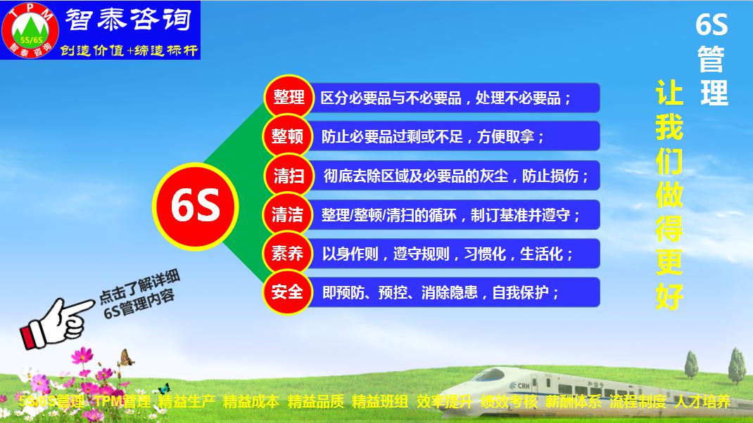 智泰咨詢公司在企業(yè)推進6S管理中,為了確保6S管理能夠快速展開并結(jié)出成果,還會導(dǎo)入其它的管理工具來輔助6S管理的推進。以下是各個管理工具的簡介。