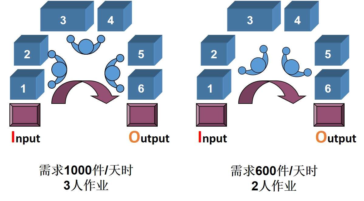 在傳統(tǒng)生產(chǎn)方式中,工人通常只會操作一種設備。當A設備的生產(chǎn)能力很強而B設備的生產(chǎn)能力較弱時,很容易造成A設備的操作工人空閑而B設備的操作工人過于繁忙,從而導致生產(chǎn)不均衡。因此,“一個流”生產(chǎn)要求工人能夠操作多臺生產(chǎn)設備,通過培養(yǎng)多能工來均衡整個生產(chǎn)節(jié)拍。此外,培養(yǎng)多能工還有利于人員的增加或減少。