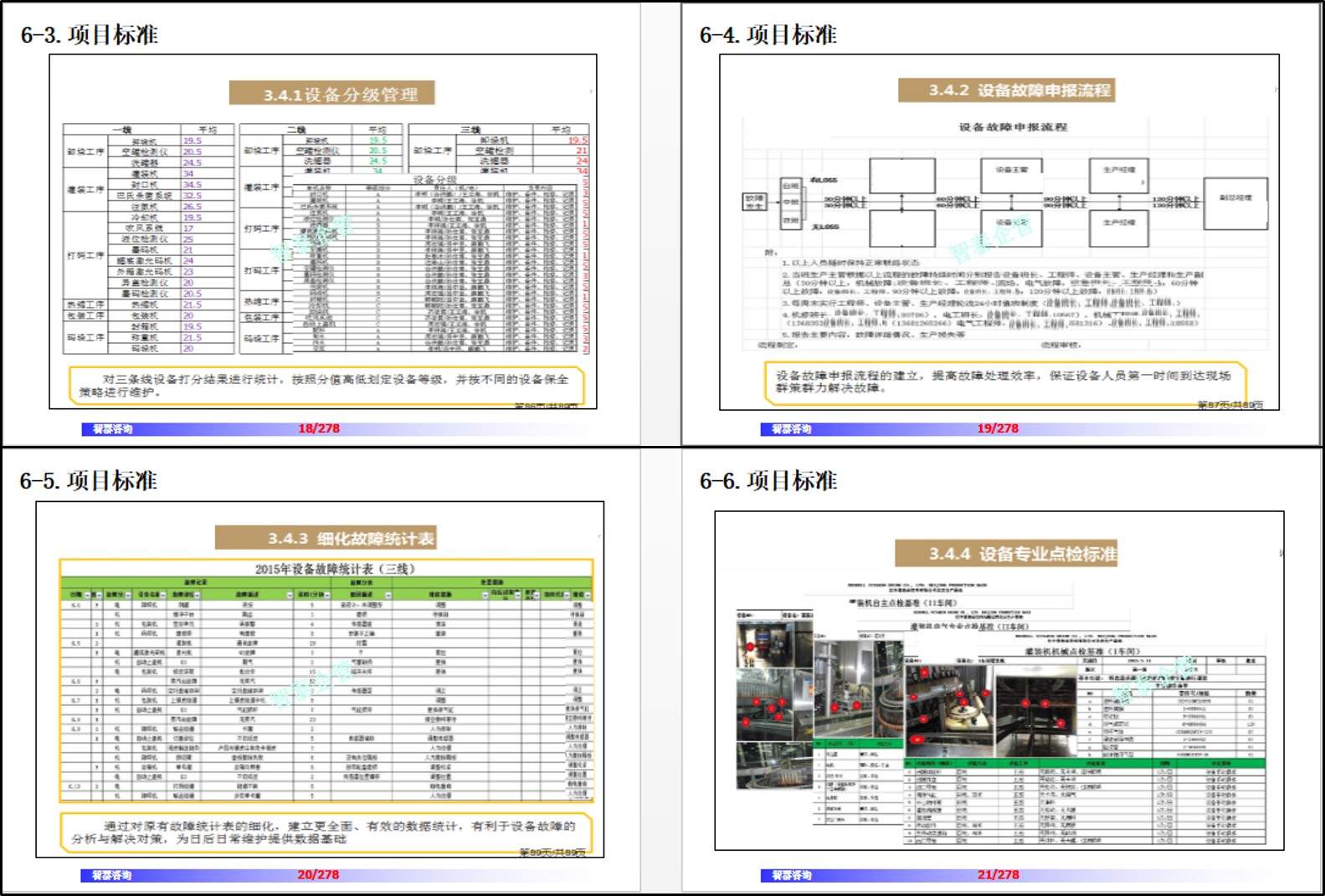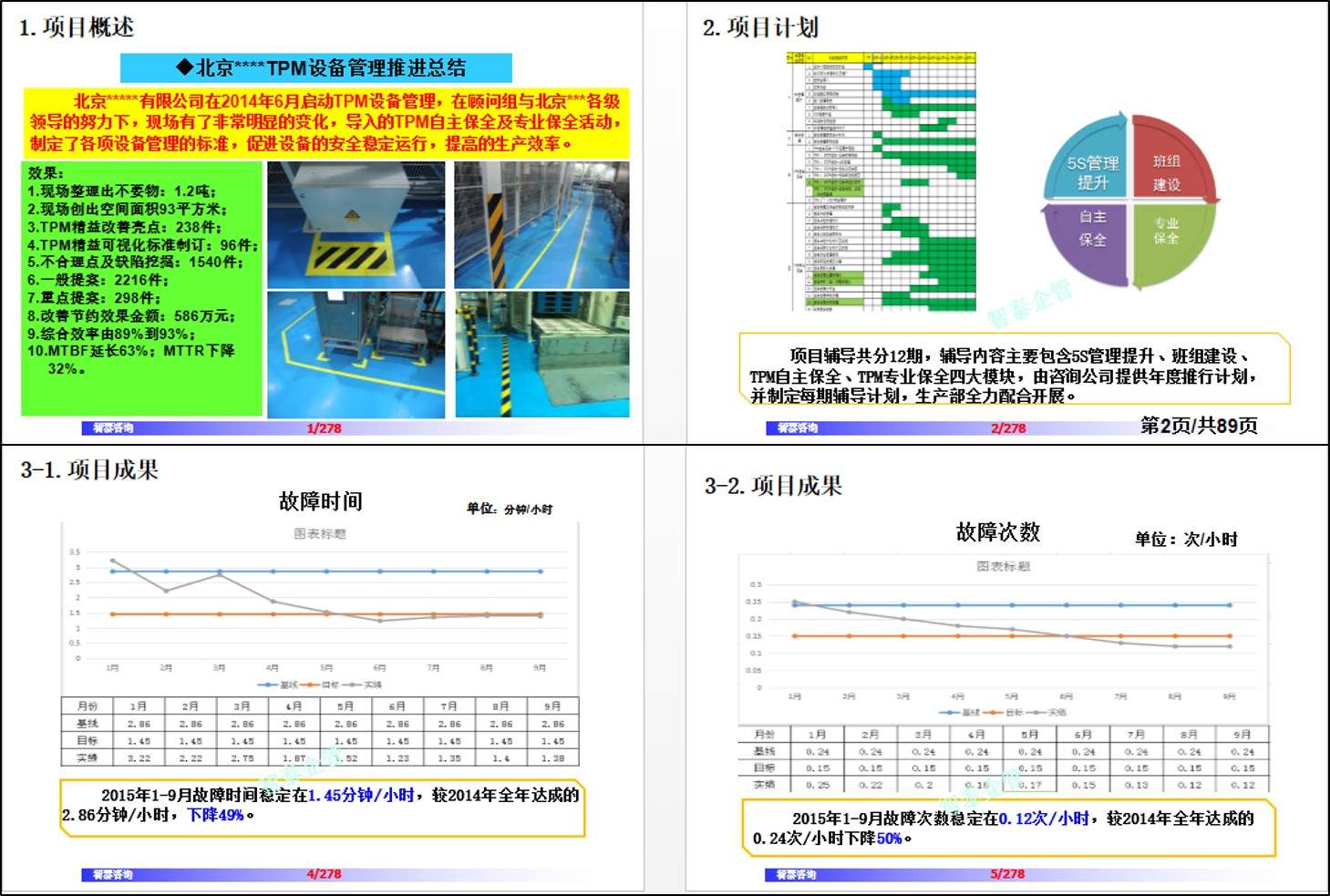 智泰咨詢下屬的TPM咨詢公司為企業推進的TPM管理活動中,為企業設備故障率下降推進了大量的制度及標準,通過全員消除設備的缺陷并改善及復原,并對設備進行部分改良,促進設備長期穩定運