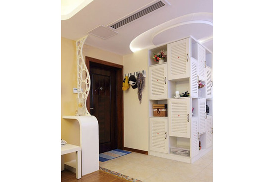 眾多或開放或關(guān)閉的玄關(guān)格是這個(gè)玄關(guān)不錯(cuò)的亮點(diǎn),開放和封閉相同的設(shè)計(jì)很好的提供了裝飾和收納兩個(gè)功能,無論是綠色植物還是家中雜物都有了不錯(cuò)的安放之地。