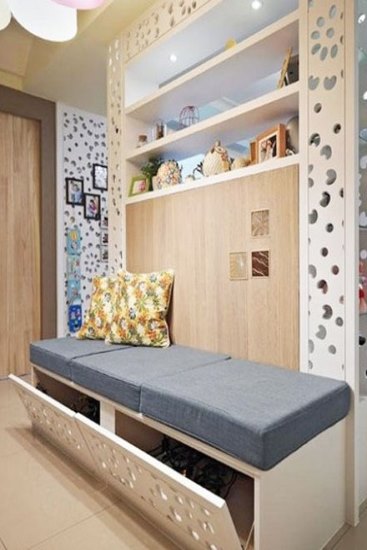 這款玄關(guān)設(shè)計(jì)的很貼心,穿鞋子一直蹲著還是很難受的,做個(gè)既能收納又方便了穿鞋時(shí)的痛苦,有點(diǎn)小型客廳的感覺。