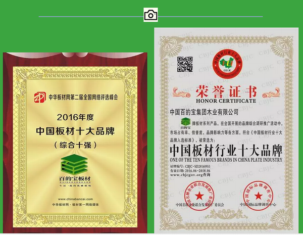 百的寶健康家居板材以品牌營(yíng)銷、誠(chéng)信經(jīng)營(yíng)的理念、以技術(shù)領(lǐng)先、高性價(jià)比的產(chǎn)品和完善的服務(wù)體系贏得了廣大消費(fèi)者和經(jīng)銷商的信賴;得到了行業(yè)和國(guó)家權(quán)威機(jī)構(gòu)的高度認(rèn)可。