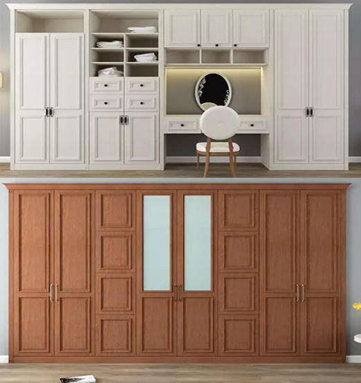1、如果家里空間足夠,選擇平開門比較合適;如果是小戶型,空間比較擁擠的話建議選擇推拉門。2、如果你所處的地方環境比較潮濕,但是空間又不大的情況,百的寶板材的建議如下:先量好床頭旁邊所剩下的空間有多少,選擇一半以下寬度的平開門衣柜。由于空間比較狹窄,下面建議做成抽屜式的儲物空間,專門放置一些小東西;高于床高度是平開門柜門的話,找衣服不會顯得太麻煩。