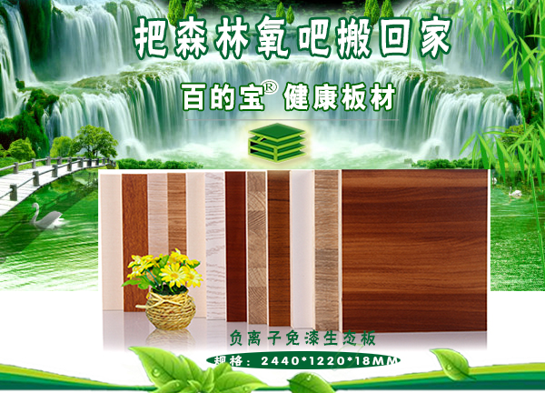 百的寶免漆板效果既高雅,成本又降低,因此是綠色環保、無毒、無味、 無污染的跨世紀新一代免漆裝飾材料,產品以其高檔實惠來領導裝飾材料新潮流。