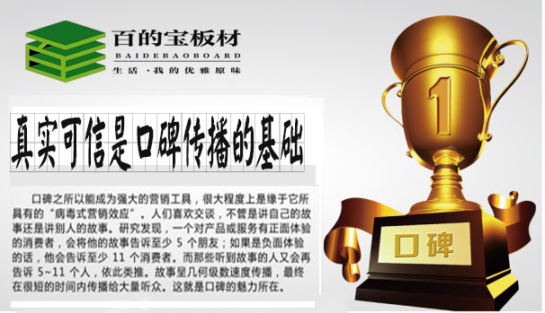 中國板材品牌百的寶認為:真實可信是口碑傳播戰(zhàn)略的基礎。